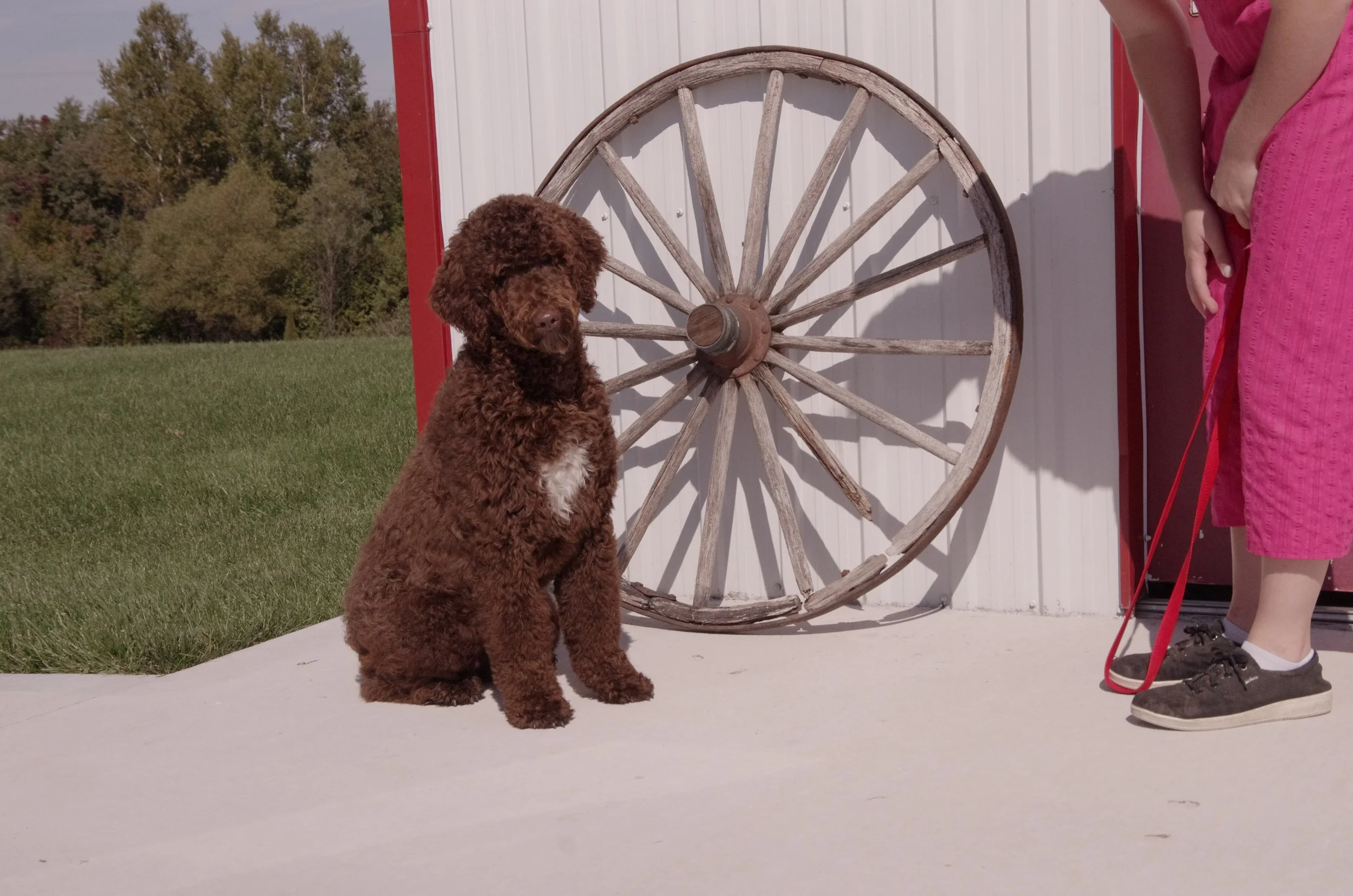 Orillia is an Olde English Goldendoodle (Goldendoodle x Olde English Sheepdog) that was born and raised here at Wagging Heart Kennels. She is a full sister to Orchid, who has a soft golden apricot colored coat. Their daddy is Phil who is a son of Samsonthedood. Check him out on Instagram. Her beautiful chocolate colored coat will be a color people are looking for. She's got a very loyal personality, just like her momma. She is going to produce stunning puppies and they will be perfect family companions. If you are looking for the perfect mix of the Golden Retriever, Olde English Sheepdog, and Poodle, be sure to reserve one of her beautiful puppies. You will not be disappointed. These guys are simply amazing!