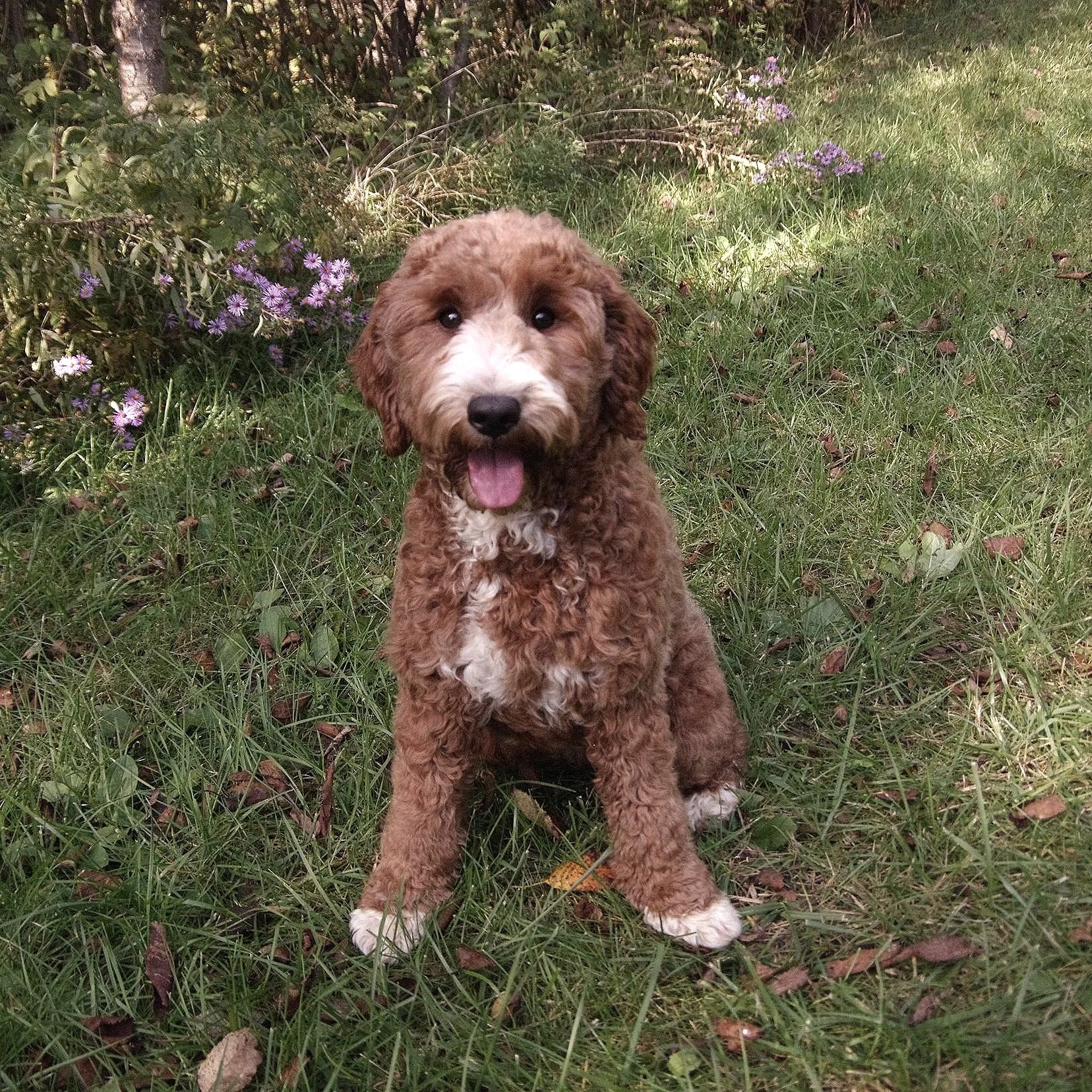 Tasha is an F1b Mini Goldendoodle that was born and raised here at Wagging Heart Kennels. Her parents are Topaz X Jasper…. (a supreme mating, thus we have kept 3 puppies from this mating, 1 other sister Truffles and 1 brother Trooper.) She has a beautiful shaggy red/white colored coat, that is highly sought after in the Goldendoodle look. She's got a very gentle and playful personality. She likes to play with all the other dogs here in our huge exercise area outside, where she can run as fast as her little legs will take her. She is an absolutely stunning dog and her puppies will be the same.